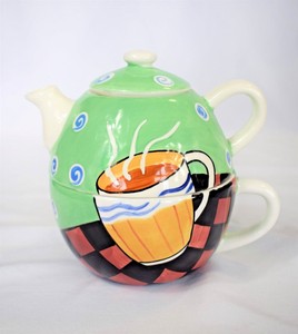 Jazz Cafe Stacking Teapot Cup Kitchen Decor Tea Set For One Hand