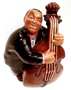 Cookie Jar Jazz Bass Man Black Americana Hand Painted Clay Art